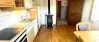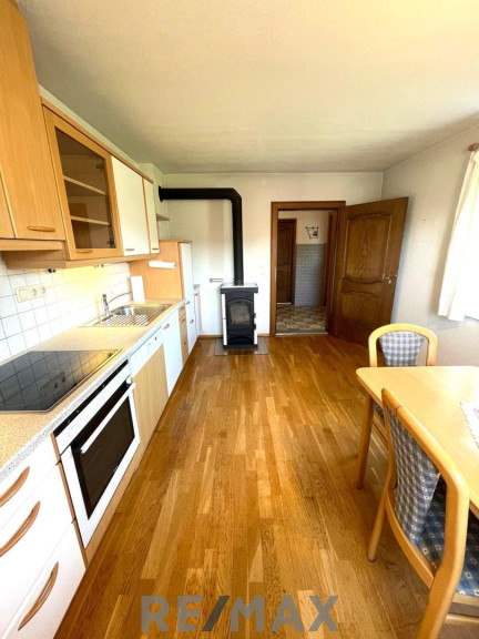 Im Erdgeschoss erwartet Sie eine gepflegte Küche mit Essbereich, welche zusätzlich mit einem Specksteinofen ausgestattet ist und für eine behagliche Atmosphäre sorgt. Das großzügige Wohnzimmer bietet viel Raum für Ihre Wohnideen und verfügt über einen direkten Zugang zum großen, nach Süden ausgerichteten Balkon – perfekt, um die Sonne und den Blick ins Grüne zu genießen. Für zusätzliche Gemütlichkeit sorgt ein Kaminofen, der an kühlen Tagen wohlige Wärme spendet. Ebenfalls auf dieser Ebene befindet sich ein Schlafzimmer mit direktem Zugang zu einem weiteren Raum, der sich ideal als begehbarer Kleiderschrank oder als Büro nutzen lässt. Ein Badezimmer mit Badewanne und Dusche sowie ein separates WC runden das Erdgeschoss ab.