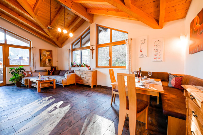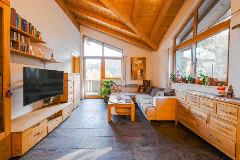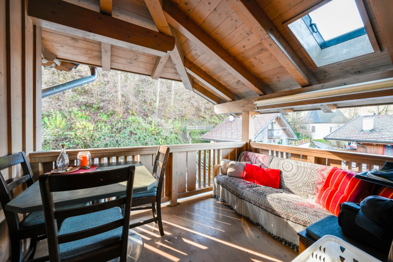 Genießen Sie die frische Bergluft auf einem der vier Balkone oder auf der großzügigen Terrasse. Hier können Sie die atemberaubende Aussicht auf die majestätischen Berge und die grüne Umgebung in vollen Zügen genießen – der perfekte Ort für unvergessliche Sonnenuntergänge und gesellige Grillabende mit Freunden und Familie.