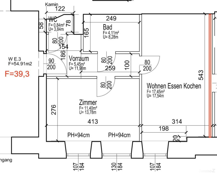 | Gesamtfläche: | 39,30 m² |