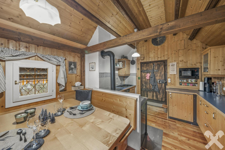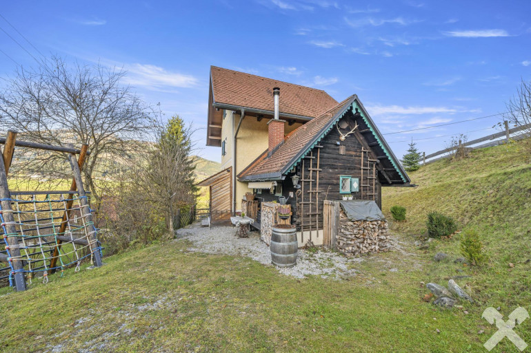 Das Wochenendhaus im jetzigen Zustand entstand durch Zubau an einen "Troadkasten"