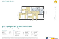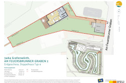 Vor dem Eingang zum Haus haben Sie zwei KFZ-Stellplätze, einen kleinen Vorplatz sowie die ca. 4,5 m² große Gartenhütte. Die gesamte Grundstücksfläche beträgt ca. 594,8 m². Sie betreten die Doppelhaushälfte Am Feuersbrunner Graben 2 über einen ca. 7,2 m² großen Vorraum, mit Platz für die Garderobe. Rechter Hand finden Sie den Technikraum und das Gäste-WC. Linker Hand befindet sich ein ca. 6,2 m² großer Abstellraum. Gerade aus gelangen Sie zu einem ca. 10,4 m² großen Schlafzimmer und zum ca. 36,1 m² großen Wohnküchenbereich, der sich zur ca. 20,9 m² großen Lärchenholzterrasse, dem Garten und zum See hin öffnet. Eine Treppe führt Sie in das Obergeschoss mit drei Schlafzimmern (ca. 10,7 m², 12,9 m² und etwa 11,7 m²), einem separaten WC, einem ca. 5,5 m² großen Abstellraum mit Waschmaschinenanschluss und dem ca. 7,2 m² großen Badezimmer mit Doppelwaschtisch, Badewanne und Dusche.