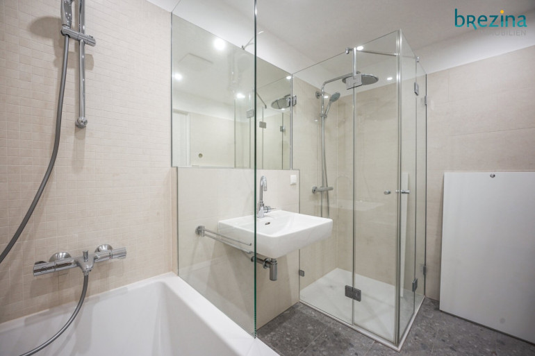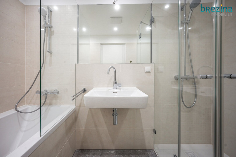 - Badezimmer mit Badewanne, Dusche, Waschbecken und Waschmaschinenanschluss – ca. 5,28m2