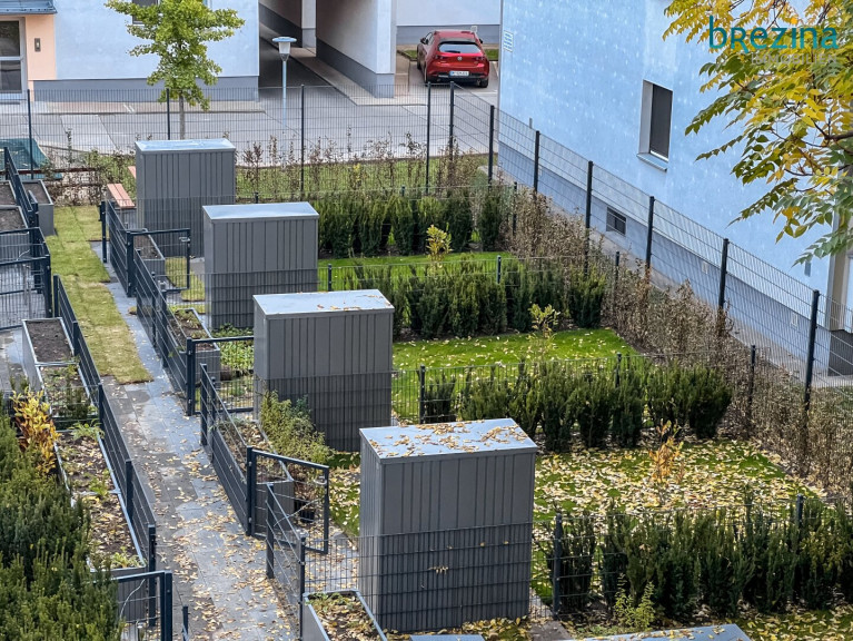 - eigene voll ausgestattete Gartenparzelle mit eigenem Geräteschrank – ca. 47,45 m² - davon befestigt ca. 14 m²