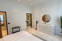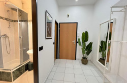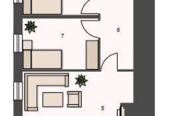 Die Wohnung ist aufgeteilt in ein großflächiges Wohnzimmer mit drei Schlafzimmern, eines der Schlafzimmer ist mit einem Schrankraum ausgestattet, zwei Badezimmern, eines mit einer Badewanne und ein weiteres mit einer Dusche ausgestattet, einem separaten WC, eine separate Küche sowie einen Abstellraum.