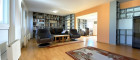 großzügig und offen gestalteter Wohnraum mit Zugang zu beiden Terrassen
