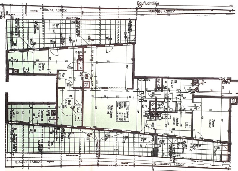 Das zweite ca. 15 m² große Zimmer verfügt über den Zugang zur ca. 10 m² großen Loggia und ist direkt über den Vorraum erreichbar. Die nord-ost-Loggia ist auch mit der größeren Terrasse verbunden.