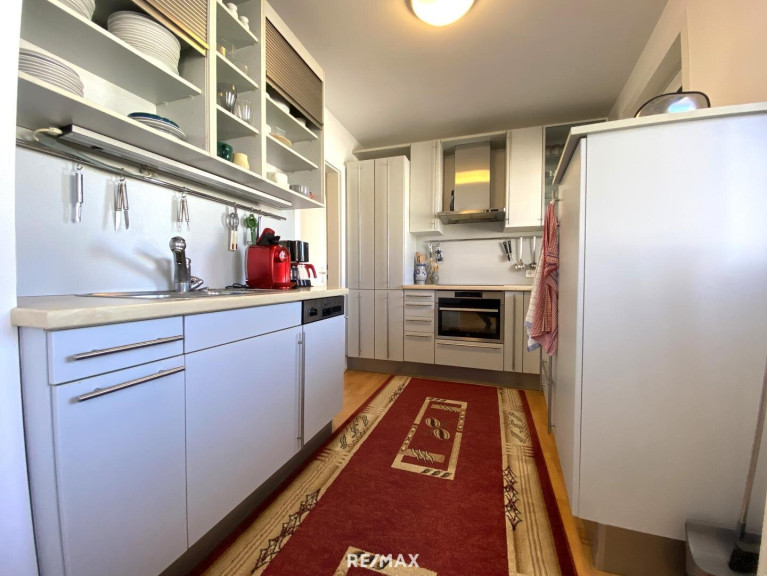 Aus dem Vorraum gelangen Sie in das Herzstück der Wohnung - den ca. 52 m² großen Wohnraum mit Zugang zu beiden Terrassen und die ca. 8 m² große Küche.