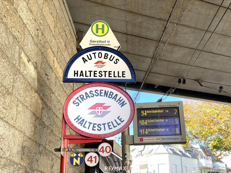 gute öffentliche Anbindung durch S-Bahn Gersthof, Straßenbahnlinien 40, 41 (Richtung Schottentor) sowie 10A, 42A