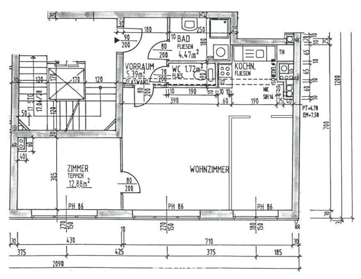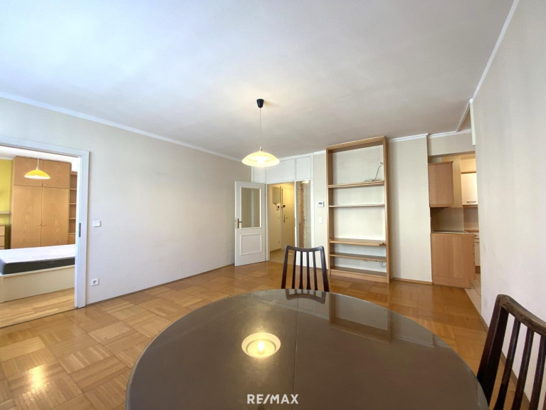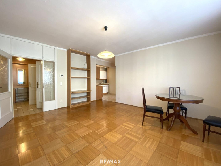 Aus dem Vorraum gelangen Sie in das Wohnzimmer mit anschließender Kochnische, das Bad und das separate WC. Aus dem Wohnzimmer gelangen Sie in ein Zimmer mit ca. 13 m² und über den Küchenbereich in ein weiteres Zimmer.
