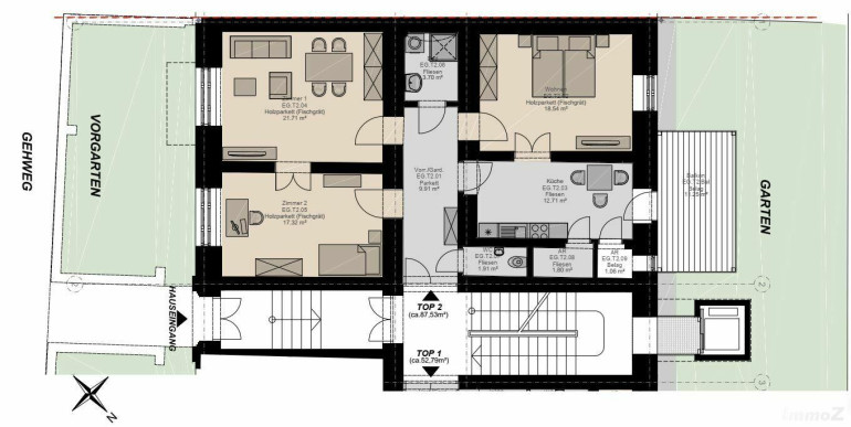 - Zugang zu 2 Abstellräumen (ca. 1,80m² und 1,06m²)