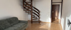 - Wohnzimmer mit großem Fenster und direktem Zugang zur Loggia sowie einer Wendeltreppe zur oberen Ebene