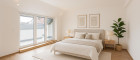 Schlafzimmer mit Zugang zur Terrasse und außenliegendem Sonnenschutz