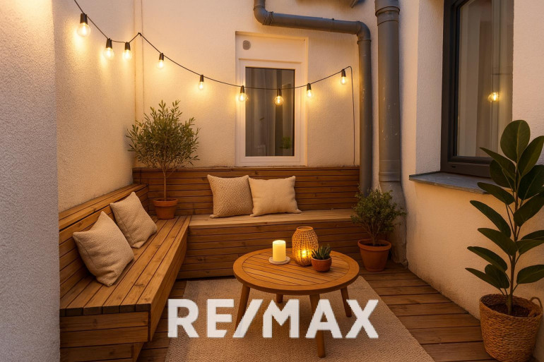 Dachterrasse mit Wasser-, Stromanschlüssen und stimmungsvoller Beleuchtung