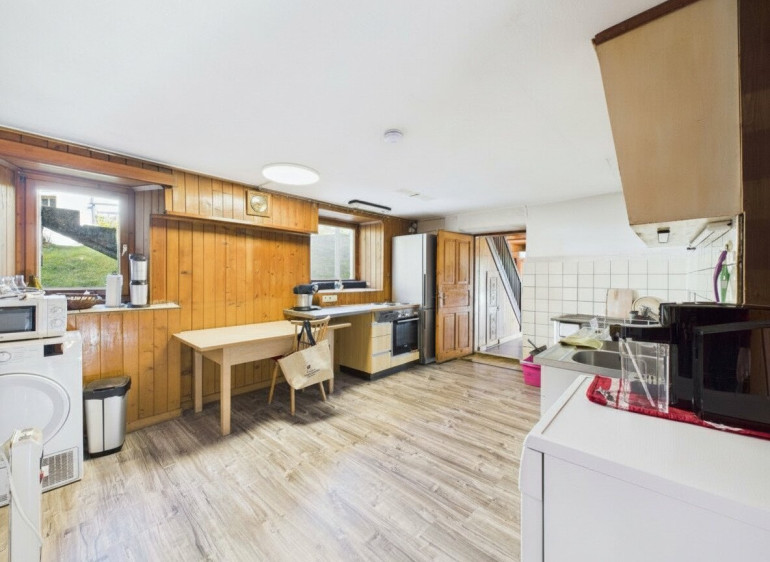 - Küche, Badezimmer, 2 WCs, Werkraum, Holzlager, Abstellräume