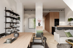 Das Zentrum des Penthouses bildet der eindrucksvolle, weitläufige Wohnbereich mit direktem Zugang zu zwei großen Terrassen. Die Küche kann – ganz nach Ihren Vorstellungen – entweder offen in den Wohnraum integriert oder als separater Bereich geplant werden. So entsteht Ihr ganz persönliches Wohnkonzept.