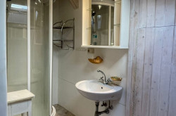 Ein separates Badezimmer mit WC und Dusche ist vorhanden – funktional, gepflegt und ideal für längere Arbeitstage oder Kundenbetrieb.