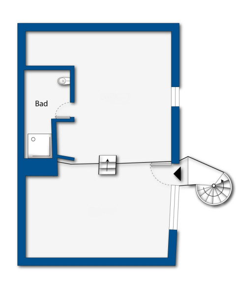 Die Einheit ist über eine private Wendeltreppe erreichbar und präsentiert sich als großzügiger, offen gestalteter Raum.