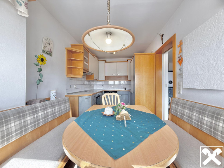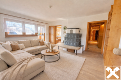 Sie parken bequem im Carport und gelangen über das allgemeine Stiegenhaus in den zweiten und letzten Stock (ohne Lift). Bereits beim Betreten der Wohnung spüren Sie eine schmeichelhafte Atmosphäre, für den absoluten Wohlfühlfaktor sorgen die stilvoll verbauten Holzmöbel im Eingangsbereich. Vom Flur aus sind alle Räumlichkeiten bequem erreichbar. 3 Schlafzimmer, eines davon mit eigenem Balkon für den Morgenkaffee im Sonnenaufgang, ein praktischer Abstellraum für gern versteckte Haushaltsgeräte und die Gästetoilette. Das Badezimmer ist mit einer Badewanne, einem 2022 erneuertem Waschtisch und einem Waschmaschinenanschluss ausgestattet. Am Ende der Diele gelangen Sie in das Herzstück der liebevoll gepflegten Wohnung, das große Wohnzimmer mit Zugang zur Küche mit einer vom Tischler angefertigten Sitzgarnitur. Genießen Sie traumhafte Stunden mit der ganzen Familie in kalten Monaten vor dem Kachelofen, oder im Sommer auf dem Balkon mit Blick aufs Steinerne Meer.