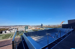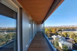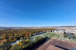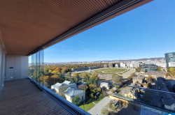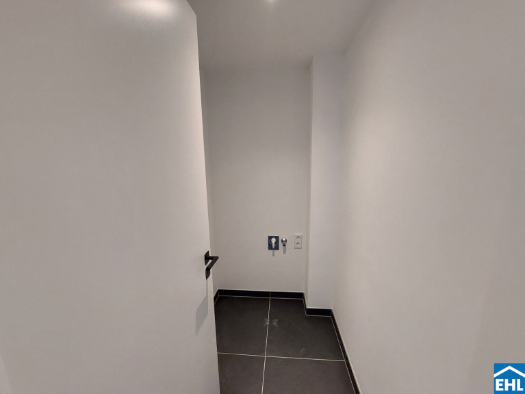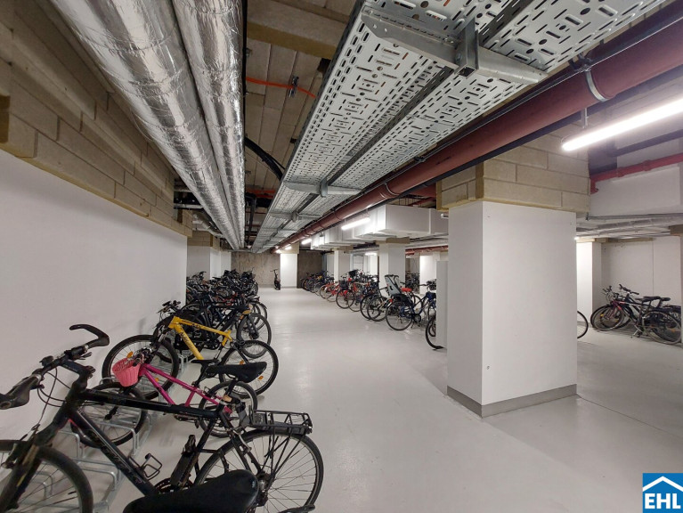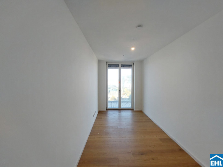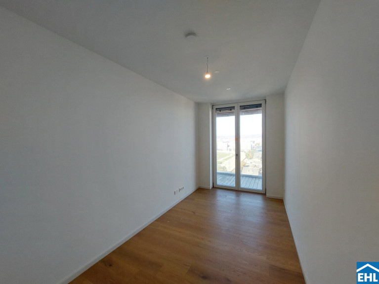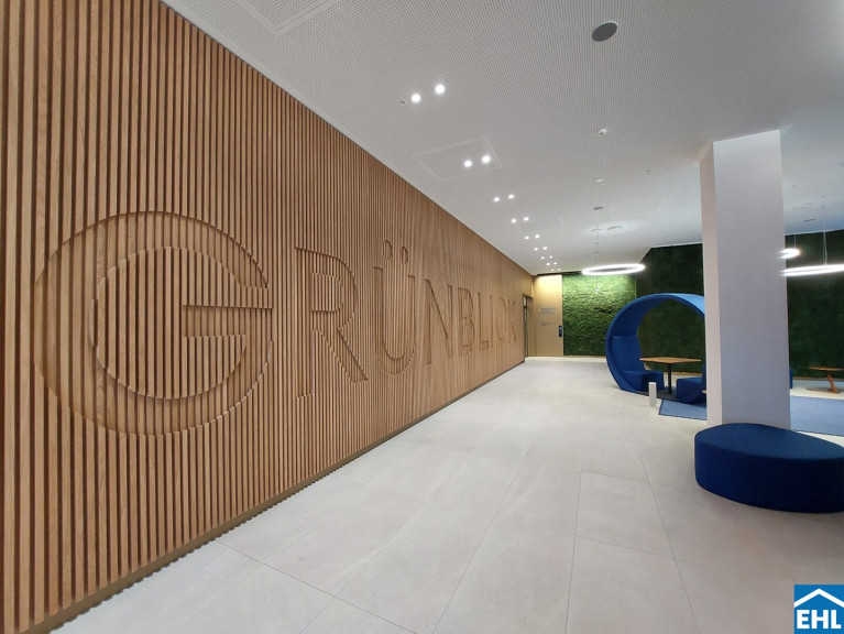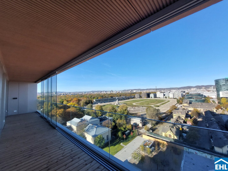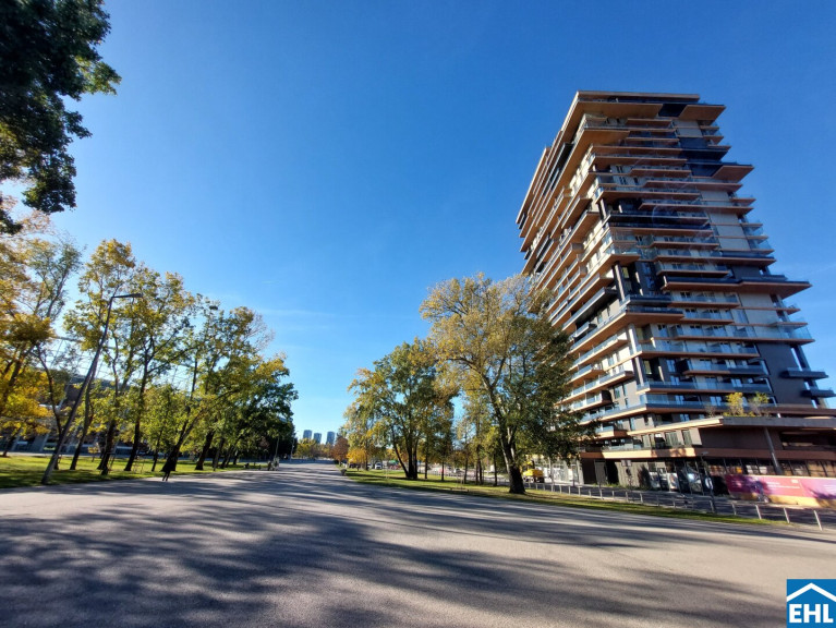 Ein weiteres Highlight ist die Freifläche, von der sich nicht nur ein herrlicher Blick über die Trabrennbahn, sondern auch ein weiter Blick über die Stadt eröffnet – vorbei am ehrwürdigen Rathaus, dem stolzen Stephansdom und bis hin zum lebendigen Prater – die 20 m² große Loggia erweitern den Wohnraum nach draußen und machen den Alltag luftiger: Frühstück in der Morgensonne, ein Glas Wein am Abend oder ein Rennen auf der Trabrennbahn Krieau.