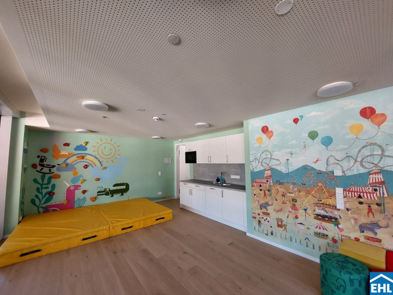 Schon beim Betreten der Wohnung zeigt sich der klare, familienfreundliche Grundriss: Ein einladender Vorraum führt Sie in den zentralen Wohnbereich, der als Herzstück der Wohnung Raum für gemeinsames Kochen, Essen und Entspannen bietet. Große Fensterflächen sorgen dabei für ein helles, offenes Wohngefühl und schaffen eine angenehme Verbindung zwischen Innen und Außen.