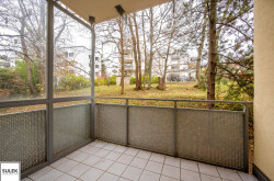 Das Wohn-/Esszimmer bietet Zugang zum zweiten Balkon, welcher wetterunabhängig zum Entspannen und Verweilen mitsamt Grünblick einlädt.
