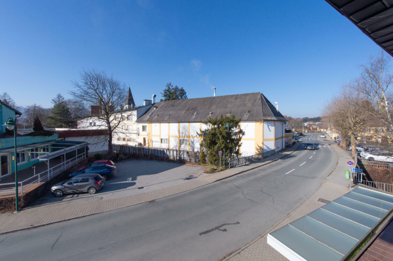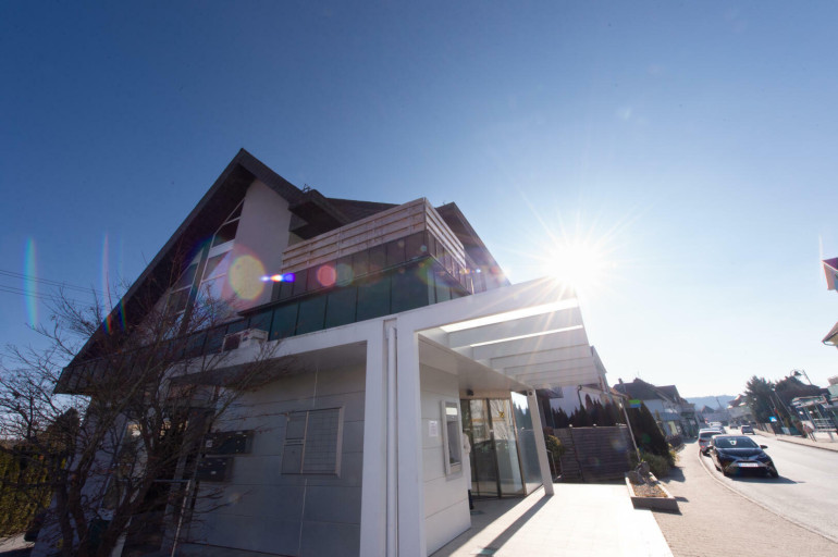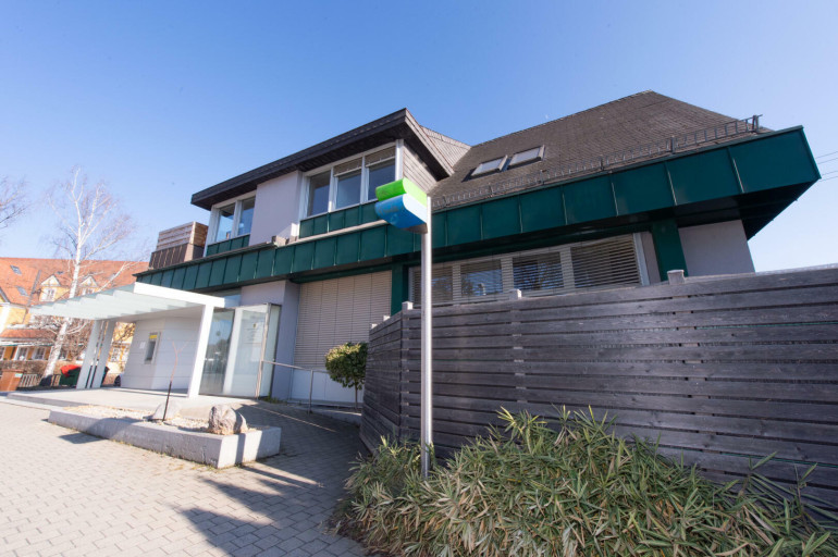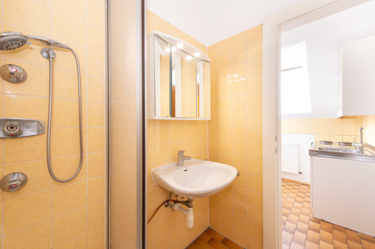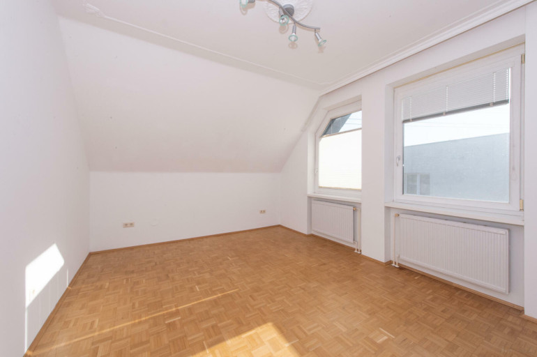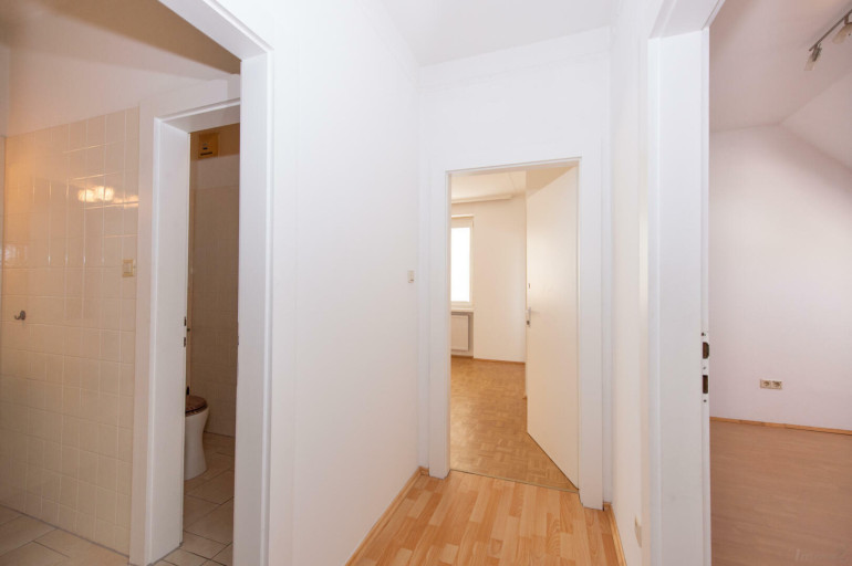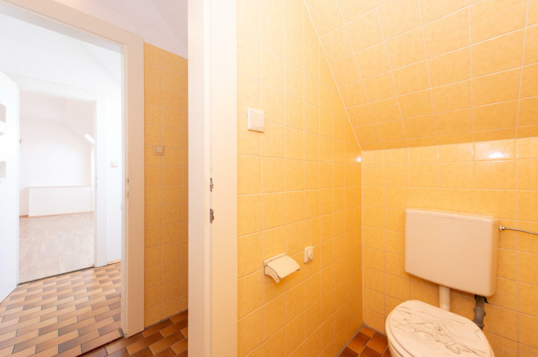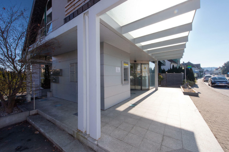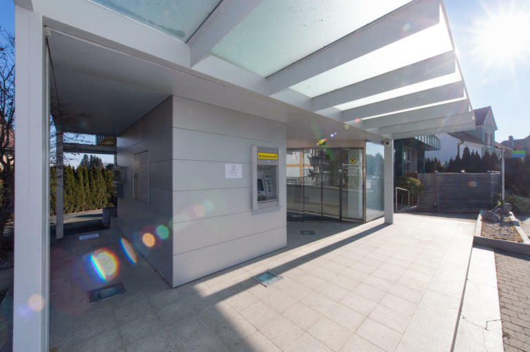 - Gewerbefläche (38 m²): Foyer mit Bankomat, Technikraum, Vorraum mit Treppenaufgang, Abstellraum (vermietet an Raiffeisenbank)