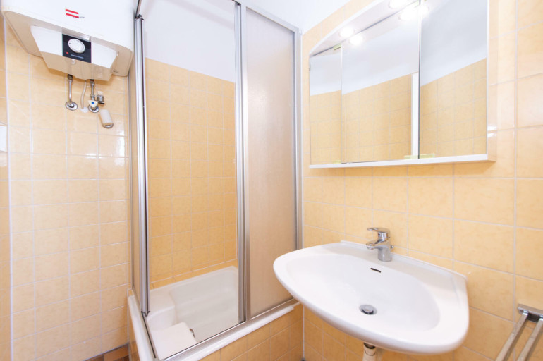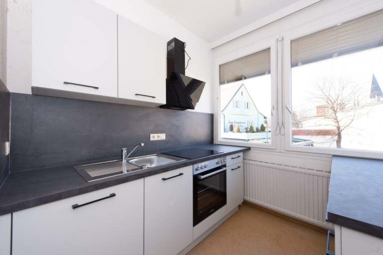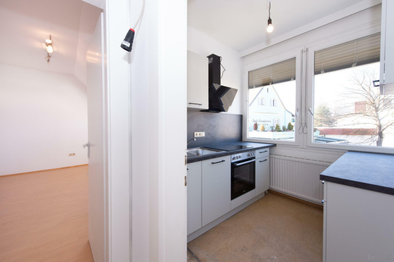 - Top 2 (52 m²): Wohn-/Ess-/Schlafzimmer, Küche, Badezimmer mit WC