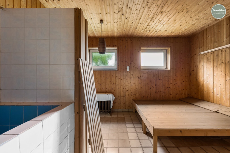 - Sauna mit Ruhebereich: Dusche, Becken (ehemals Tankraum lt. Plan)