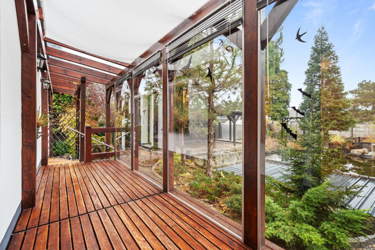 - Große Fensterfronten, Fenster 3-Fach verglast, Außenjalousien (steuerbar per WLAN)