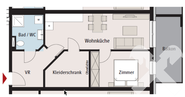 Vermietete 2-Zi-Wohnung mit Schrankraum und großem Balkon im 1. OG