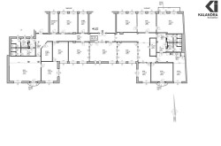 zentraler Flur, 12 Büroräume, 4 Wc, 1 Serverraum, 2 Archive, Teeküche und 3 kleine Bakone.