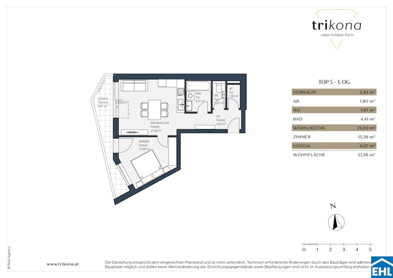 Die hochwertige Ausstattung des Projekts „Trikona“ und die energieeffiziente, innovative Holz-Hybrid-Bauweise spiegeln exzellentes Design und Qualität wider. Zeitlose Unterputzarmaturen der Firma Grohe sorgen für eine elegante Optik und praktische Nutzung. Das Weitzer Echtholzparkett schafft eine warme, natürliche Atmosphäre in den Räumen, während die moderne Smart Home Anlage das Wohnen komfortabel und intelligent macht – von der Steuerung der Beleuchtung bis hin zu Heizung und Sicherheitssystemen. Für Energieeffizienz sorgen eine Wärmepumpe mit Fußbodenheizung sowie eine innovative Kühlung via Roll Over System, die das ganze Jahr über für angenehme Temperaturen sorgt. Hochwertige Feinsteinfliesen im Badezimmer und in der Küche verleihen den Räumen einen eleganten, pflegeleichten Look. Echtholzböden ergänzen das harmonische Gesamtbild und unterstreichen die Qualität der Ausstattung. Besonders hervorzuheben ist, dass alle verwendeten Materialien, Marken und Subunternehmen aus Österreich stammen. Damit wird nicht nur höchste Qualität garantiert, sondern auch die lokale Wirtschaft nachhaltig unterstützt. Diese Kombination aus österreichischer Handwerkskunst, Ästhetik und Funktionalität macht das Wohnerlebnis in „Trikona“ einzigartig.