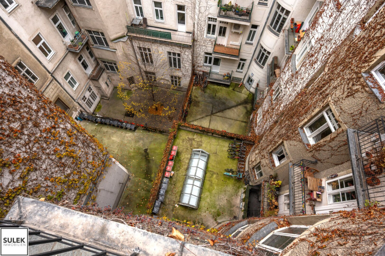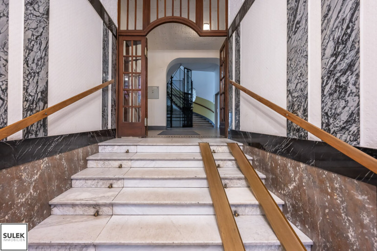 Die Büroeinheit befindet sich in einem schönen, repräsentativen Altbau aus dem Jahr 1911, der über ein Eingangstor direkt an der Invalidenstraße zugänglich ist und in ein gepflegtes Stiegenhaus führt.
