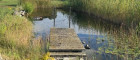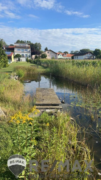Das Haus bietet weiteren Wohnraum im Untergeschoss, das über eine Treppe von der Diele aus erreicht wird. Vom Zentralraum des Untergeschosses aus kann man den Technik- und Waschraum, Abstellraum, ein weiteres Bad und großes Schlaf/Kinderzimmer getrennt begehen. Das Schlafzimmer ist mit 2 in den Zentralraum führenden Türen ausgestattet und kann daher auch in zwei getrennte Räume zu je ca., 20 m² geteilt werden. Von dort öffnen sich Glastüren direkt hinaus in den großen, langgestreckten Garten. Obwohl der Garten liebevoll angelegt und gepflegt ist und über ein Natur- Schwimm-Biotop verfügt, bietet er noch ausreichend Platz für weitere Gestaltungsmöglichkeiten. An seinem Südende kann man über Feldwege den S-Bahnhof rasch erreichen, sofern man nicht die Straße mit dem Kfz benutzt.