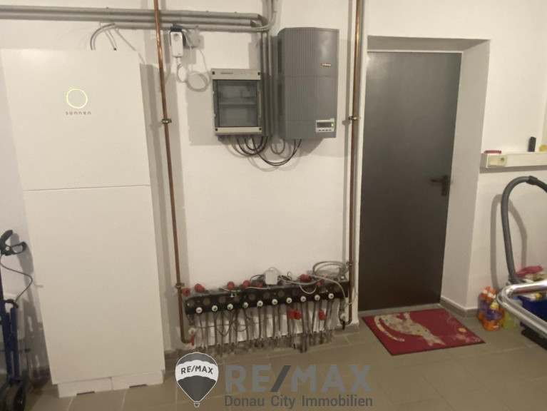 Trotz der deutlich über 300m² großen Wohnfläche und der offenen Gestaltung sind die Energie- und Betriebskosten mit insgesamt ca. € 350,- pro Monat (abhängig von fluktuierenden Preisen) ziemlich gering, einerseits, weil das Haus über eine leistungsstarke 4 KW PV-Anlage mit 14 KWh Speicher und Wärmepumpe verfügt und andererseits mit gut wärmedämmenden 38cm Wienerberger Porotherm-Ziegeln und außen Thermoputz errichtet ist. Der niedrige Gesamtenergiebedarf (f Gee, sk 098), der nicht nur den Heizenergiebedarf sondern auch Warmwasser, Lüftung und Kühlung etc. beinhaltet, liegt unter der Anforderung für Neubauten aus 2007.