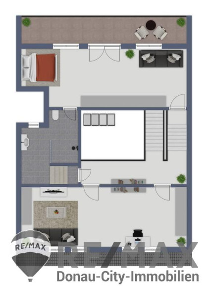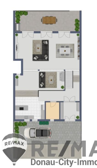 Die 2002 errichtete und 2025 renovierte Villa selber ist sehr großzügig angelegt, mit einem im Erdgeschoß offenen Küchen-, Ess- und Wohnbereich (zusammen ca. 120 m²), von dem man auf eine südseitig ausgerichtete, 36m² große balkonartige Terrasse gelangt. Der Garten ist über eine Treppe direkt erreichbar. Die Küche besticht mit einer exquisiten Ausstattung, Granitoberplatten und einer Kücheninsel.