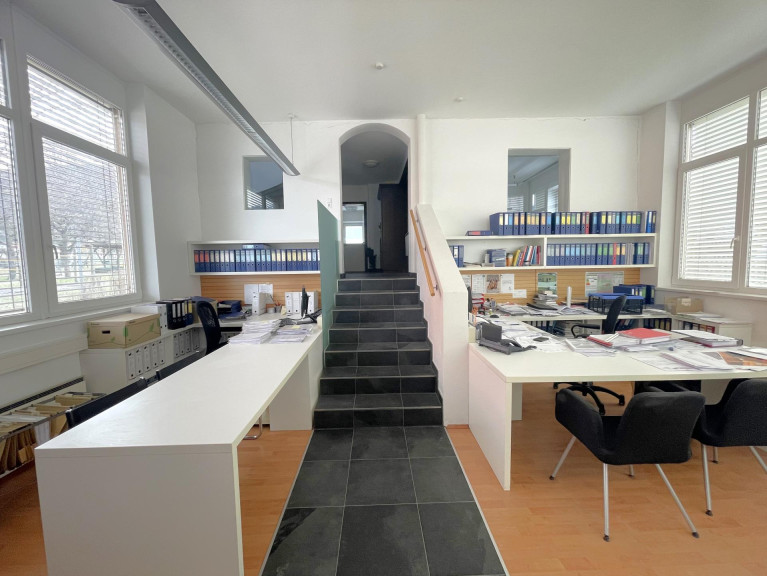 Der aktuelle Bestand bietet rund 124,68 m² Wohnfläche auf zwei Etagen. Das Haus wurde etwa 1955 errichtet und 2003 durch eine Bürofläche erweitert. Zuletzt wurde es gewerblich genutzt, kann jedoch wieder in ein Wohnhaus umgewandelt und familiengerecht adaptiert werden.