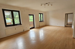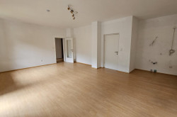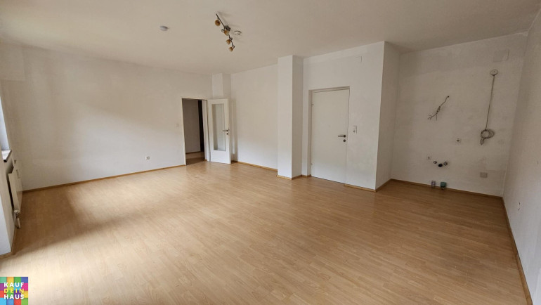 - Wohnzimmer/Esszimmer und Küche mit Balkon