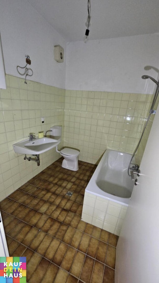 Fliesen, Laminatboden, Zentralheizung, Wohnküche / offene Küche, Südbalkon, Badewanne