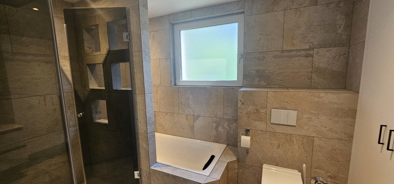 - Schönes Badezimmer: Das Badezimmer ist modern gestaltet und lädt zum Wohlfühlen ein.