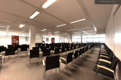 LED-Beleuchtung und neue FanCoils sind vorhanden. Im 2. Obergeschoss befanden sich bisher Schulungsräume. Die zugehörigen Nassräume befinden sich in den Allgemeinflächen des Gebäudes.