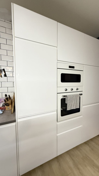Die Küche beinhaltet alle Geräte des täglichen Bedarfs und hat einen Kochpult in der Mitte.