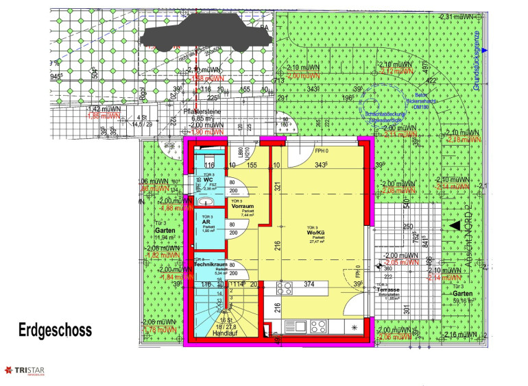WNFL. ca. 127,52 m² (5 Zimmer) + GARTEN ca. 50,52 m2 + 2 TERRASSEN ca. 21,06 m2 + PKW-Stellplatz ca. 13,80 m² = EUR 576.000 - SCHLÜSSELFERTIG!