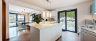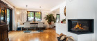 * Großzügiges Erdgeschoss mit empfangsbereitem Eingangsbereich, offenes Wohnzimmer mit Kamin, eleganter Essecke und einer modernen Küche mit Bar.