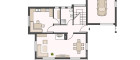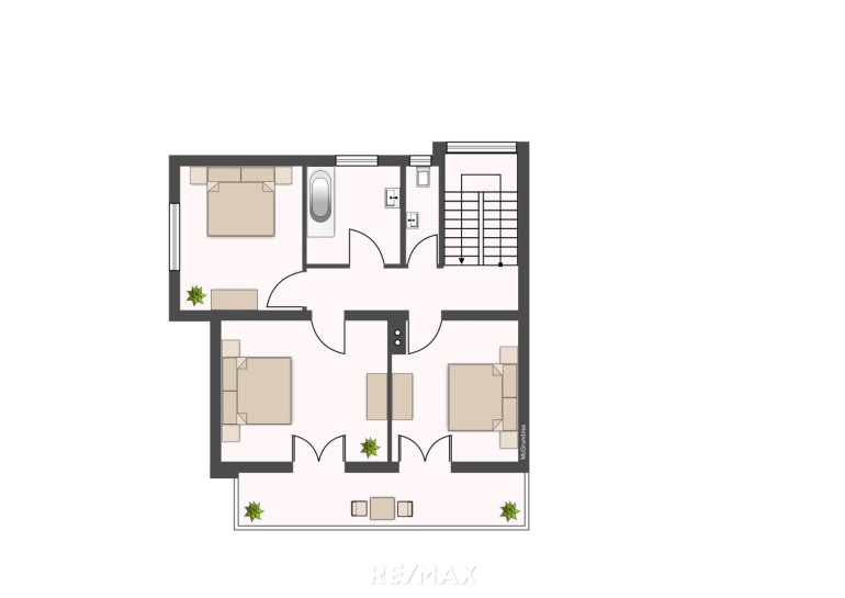 * Obergeschoss: drei Schlafzimmer plus Bad mit Badewanne und separatem WC, zwei Schlafzimmer mit Zugang zum Südbalkon.