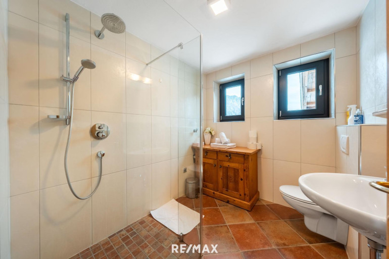* Gästebad mit WC und Dusche im Erdgeschoss.