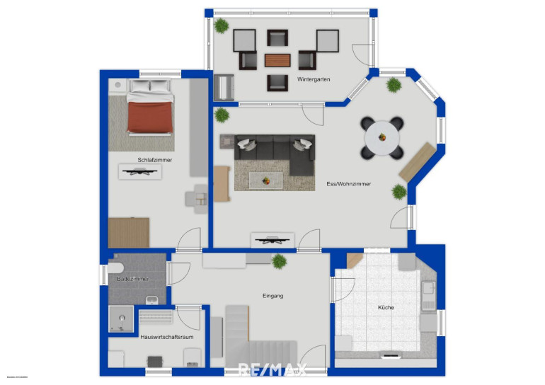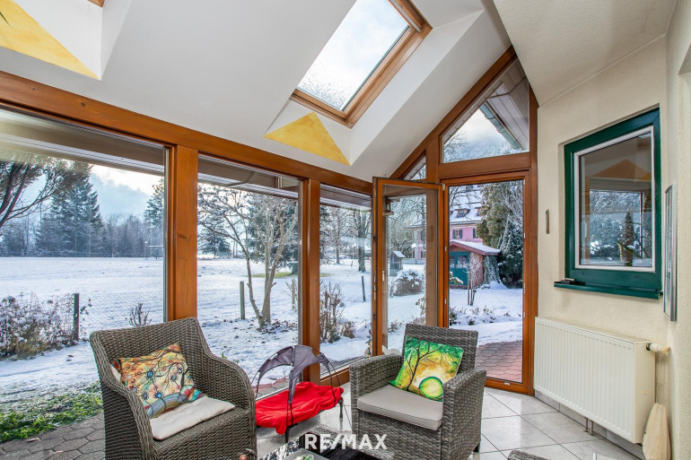 Der lichtdurchflutete Wintergarten (östlich ausgerichtet) erweitert den Wohnraum und bietet einen idealen Platz für den ersten Kaffee oder den Sonnenuntergang am Abend. Ein zusätzlicher, flexibel nutzbarer Raum – perfekt als Schlafzimmer, Gästezimmer, Büro oder kreativer Rückzugsort – ergänzt das Angebot. Ein kompaktes Badezimmer mit Dusche und WC sowie ein praktischer Technik- und Abstellraum runden das funktionale Erdgeschoss ab.