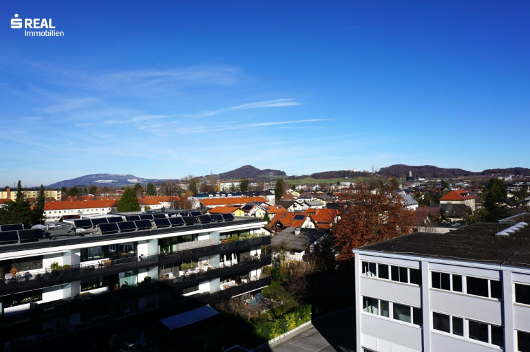 Die Wohnung ist von der Hauptstraße abgewandt, hat eine Wohnfläche von ca. 42 m², einen ca. 5 m² großen Balkon und bezaubert mit einem wunderbaren Panoramablick Richtung Maria Plain und Gaisberg.