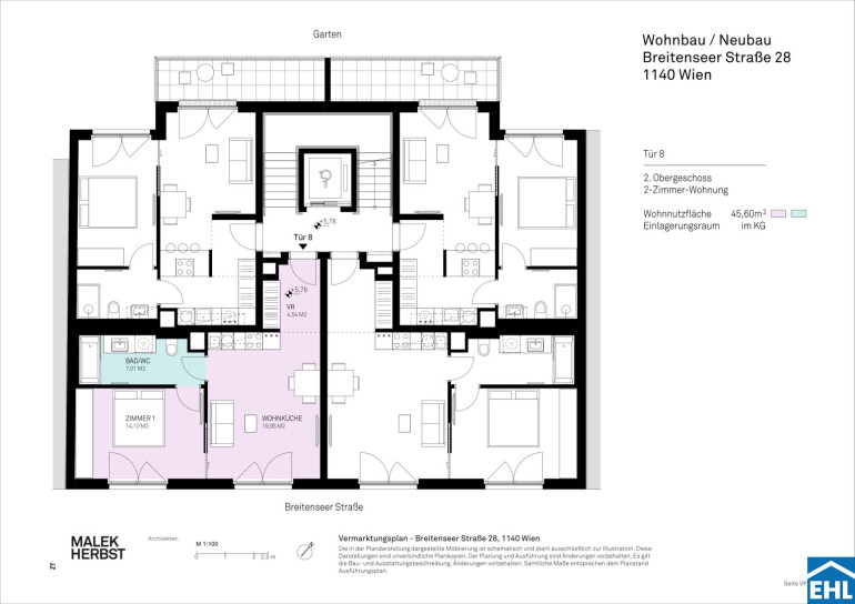 Das Erstbezugsprojekt in der Breitenseer Straße 28 überzeugt durch seine ausgewogene Kombination aus urbaner Lage und angenehmem Wohnkomfort. Inmitten des 14. Bezirks gelegen, profitieren zukünftige Bewohner von einer hervorragenden Nahversorgung: Supermärkte, Bäckereien, Cafés, Apotheken sowie diverse Geschäfte des täglichen Bedarfs befinden sich nur wenige Schritte entfernt. Gleichzeitig lädt die grüne Umgebung mit nahegelegenen Parks zu entspannenden Spaziergängen, sportlichen Aktivitäten und erholsamen Stunden im Freien ein. Die öffentliche Verkehrsanbindung ist ausgezeichnet – die U-Bahnlinie U3, die Straßenbahnlinien 10 und 49 sowie die S-Bahn S45 sorgen für eine rasche Erreichbarkeit der Innenstadt und anderer Stadtteile. Das Neubauprojekt mit 19 modernen Wohnungen verbindet somit ideale Infrastruktur mit einem ruhigen, naturnahen Wohnambiente.