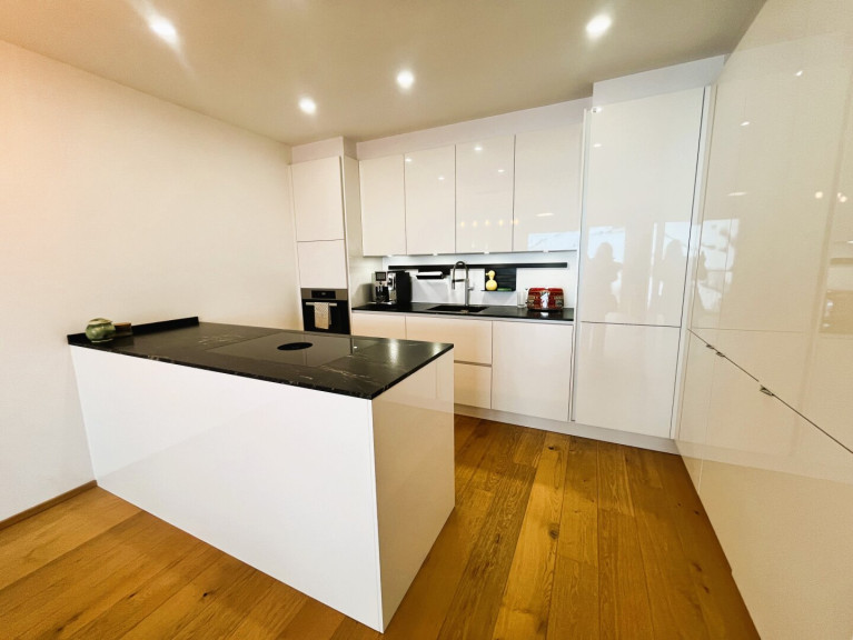 Das Mietobjekt überzeugt neben einer modernen Miele-Küche mit stilvoller Natursteinplatte durch hochwertige Eichen-Echtholzparkettböden und elektrischen Sonnenschutz auf allen Fenstern. Das elegant eingerichtete Badezimmer bietet mit einer modernen Infinity Dusche mit Regenbrause eine kleine Wellness-Oase in den eigenen vier Wänden. Weiterer Pluspunkt: Man gelangt von allen Schlafzimmern sowie vom Wohn-/Essbereich auf den ca. 21 m² großen, überdachten West-Balkon und kann so auch bei Regenwetter die herrliche Aussicht auf die umliegende Bergwelt genießen. Luxus pur!